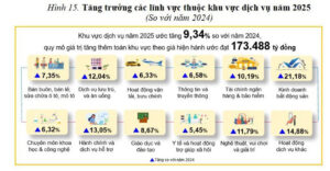 Tăng trưởng các lĩnh vực thuộc khu vực dịch vụ năm 2025 so với năm 2024 (Nguồn: Cơ quan Thống kê TP Đà Nẵng).