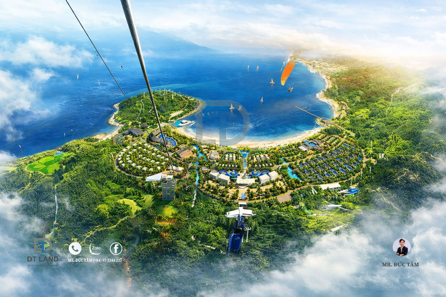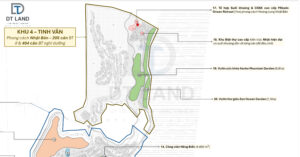 Quy hoạch dự án được chia thành nhiều phân khu chức năng rõ rệt, đáp ứng đa dạng nhu cầu từ an cư, nghỉ dưỡng, thương mại cho đến vui chơi giải trí. Thiết kế tổng thể lấy cảm hứng từ sự giao thoa Đông – Tây, mỗi phân khu mang bản sắc riêng biệt, nhưng vẫn hòa quyện hài hòa trong quần thể sinh thái núi – biển – rừng bao quanh.